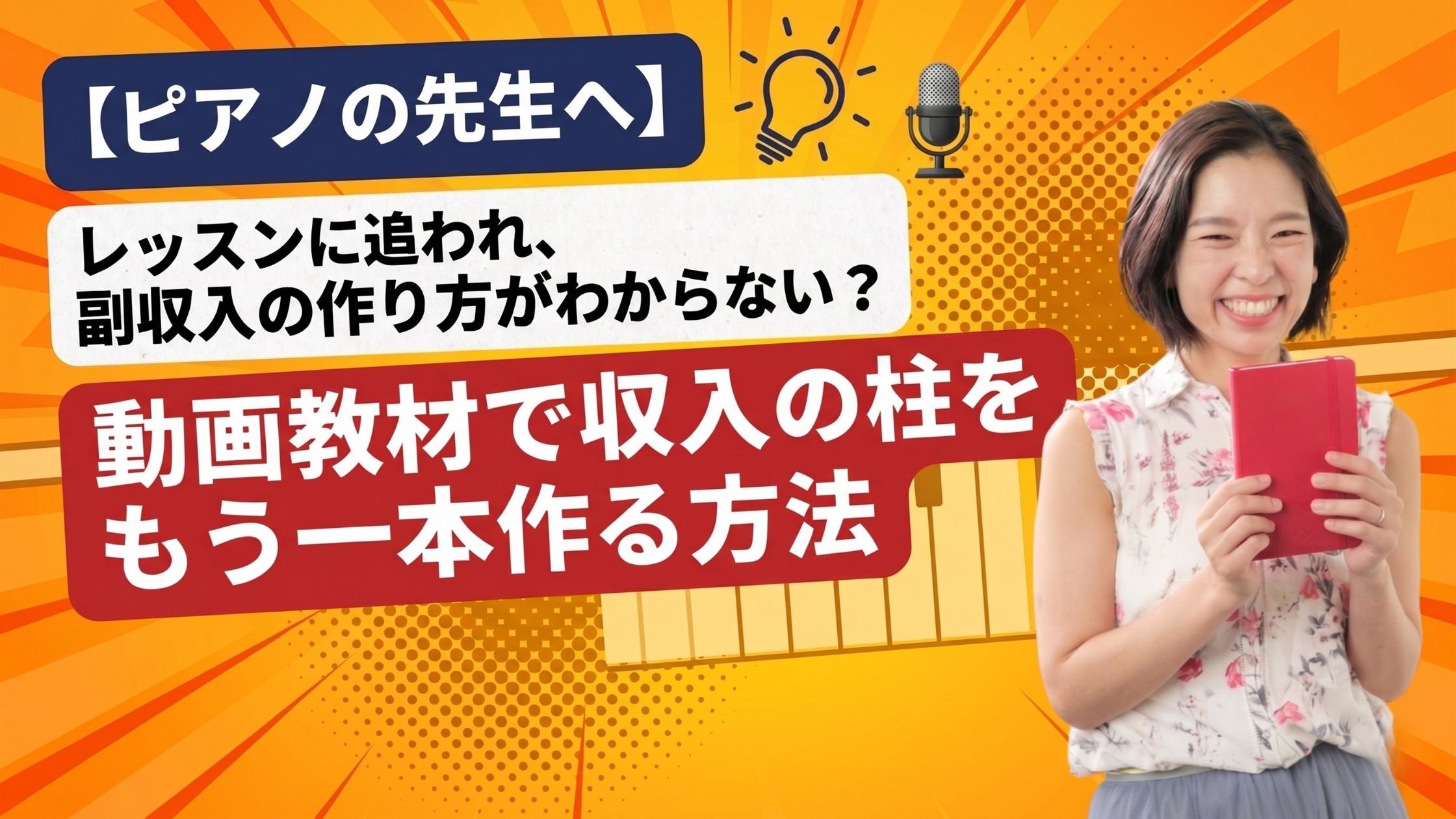 レッスンをしながらでも、動画教材で収入の柱をもう一本作ることはできます。ただし、正しい順番で進めることが大切です。この記事では、副収入を作れない先生に共通する思い込みと、実際に動き始めるための最初の一歩をお伝えします。